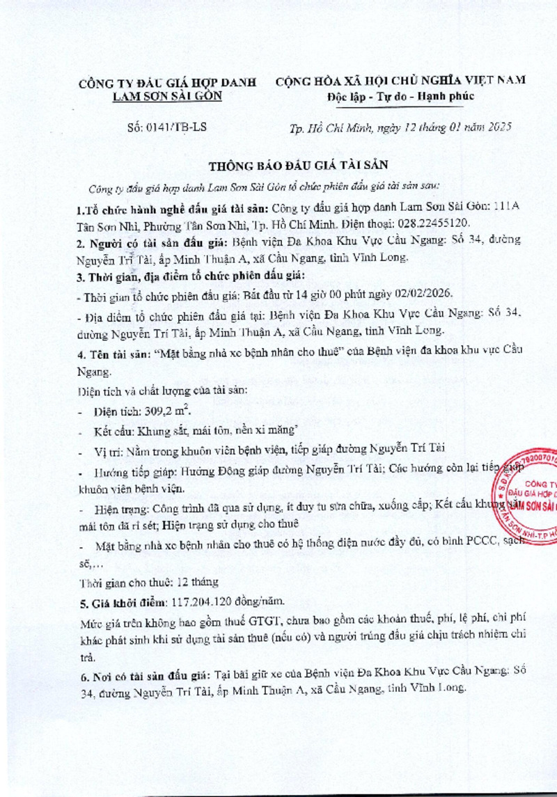 | Số hiệu | 0141/TB-LS | Cơ quan ban hành | Công ty đấu giá hợp danh Lâm Sơn Sài Gòn |